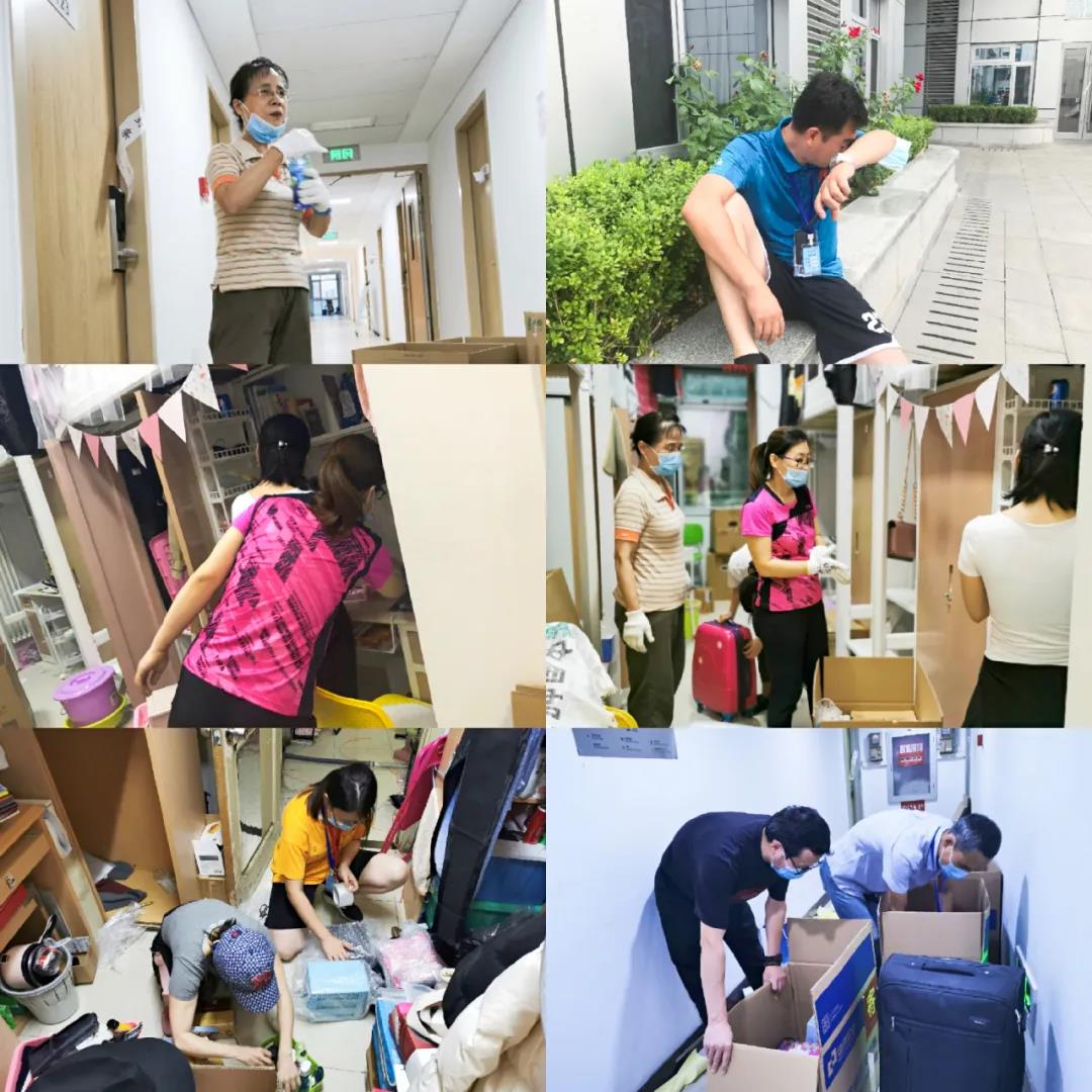 夏日炎炎,汗水浸透了老师们的衣衫,老师与辅导员们不怕苦不怕累,连续作战,用责任心、爱心、细心、耐心保质保量完成行李打包工作。蔡劲松院长、李亚梅书记看望慰问参与行李打包工作的老师们,亲自为毕业生们整点行装,并通过视频连线的方式与毕业生们亲切交流,鼓励他们不畏艰难险阻,矢志奋斗。