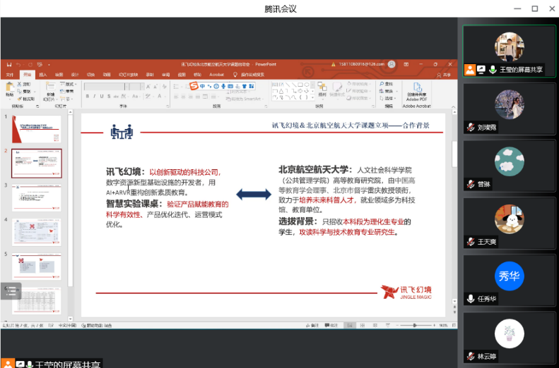 2022年07月01日上午,北航人文社会科学学院部分师生与讯飞幻境(北京)科技公司合作的“双减政策下课后延时服务的现状和需求研究”项目启动会,在线上顺利举行。本次讲座由王莹老师主持、讯飞幻境教研方和运营方参与,北航人文社会科学学院任秀华老师、田华老师主讲,人文学院学生曾琳、刘璨霓、王天爽和林云婷等项目组成员参与启动会。