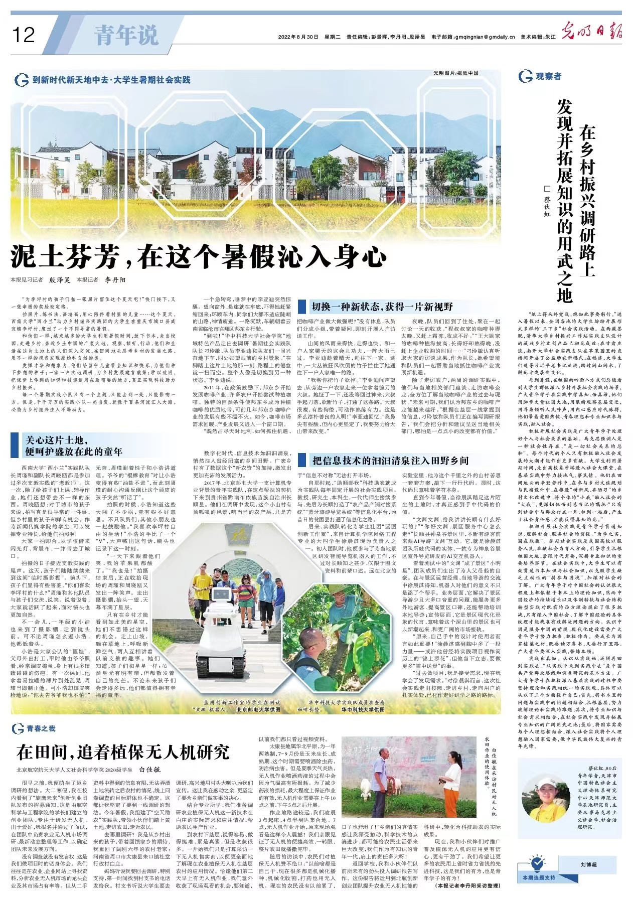 我院本科生白佳毓的暑期社会实践项目于2022年8月30日获《光明日报》报道,全文如下: