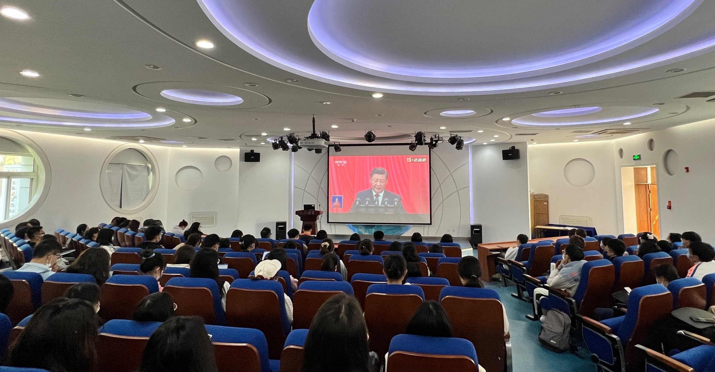10月16日,中国共产党第二十次全国代表大会在北京人民大会堂隆重开幕。人文社会科学学院(公共管理学院)组织师生在人文讲堂集体观看了开幕会现场直播盛况,认真聆听了习近平总书记代表十九届中央委员会向大会所作的报告。未到现场的师生也通过支部组织、自行收看等方式进行了认真学习。 在观看直播后,学院师生进行了热烈的学习交流和讨论。大家纷纷表示,能共同见证这一伟大的历史时刻,感到无比喜悦和自豪。要在学习和工作实践中,深入学习贯彻党的二十大精神,更加自觉地融入党和人民的事业之中,为全面建设社会主义现代化国家、全面推进中华民族伟大复兴增光添彩、贡献力量。