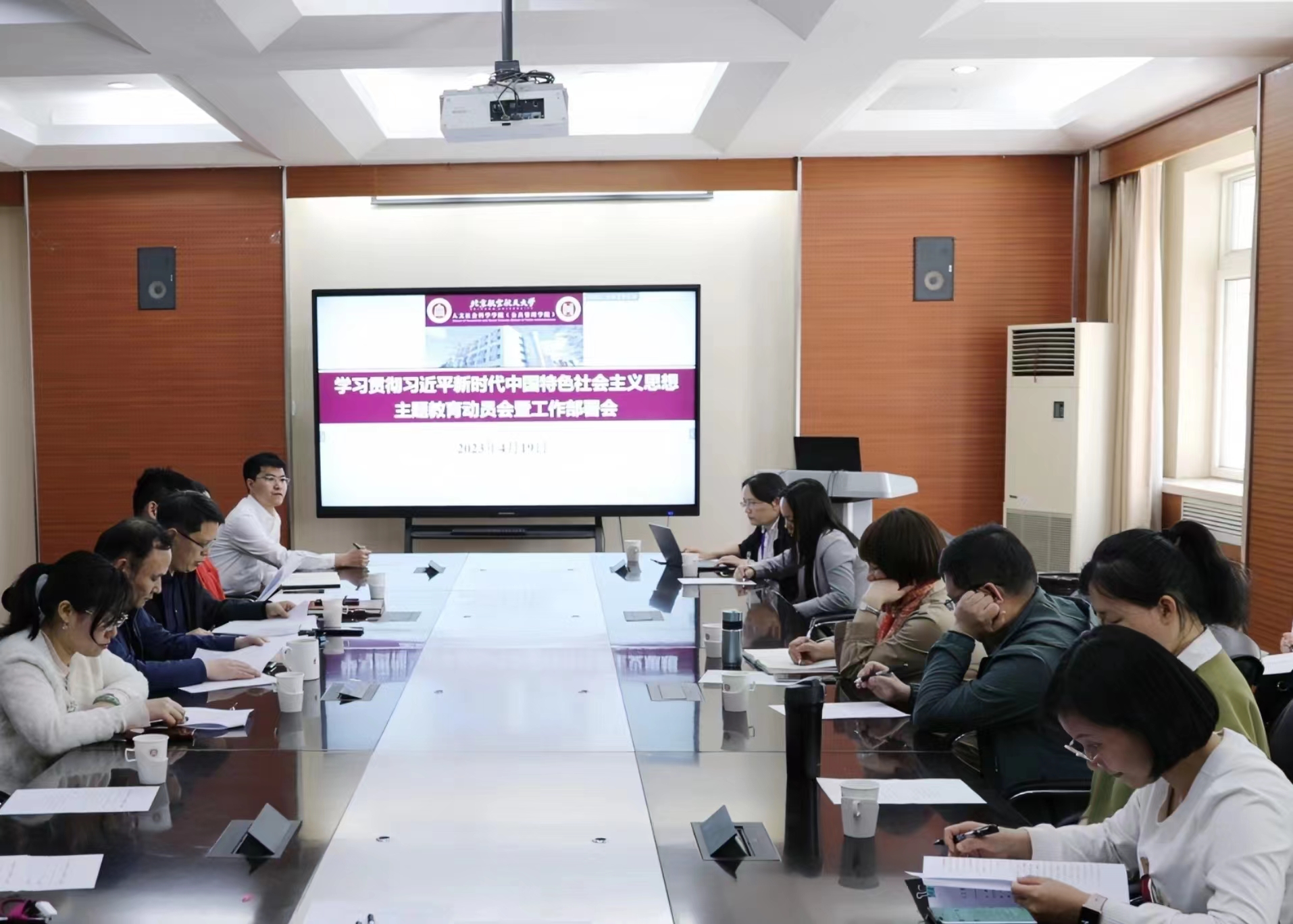 2023年4月19日,人文公管学院召开学习贯彻习近平新时代中国特色社会主义思想主题教育动员会。学院领导班子成员、全体支部书记、系部中心主任、辅导员出席会议。会议由学院党委书记王琪全主持。