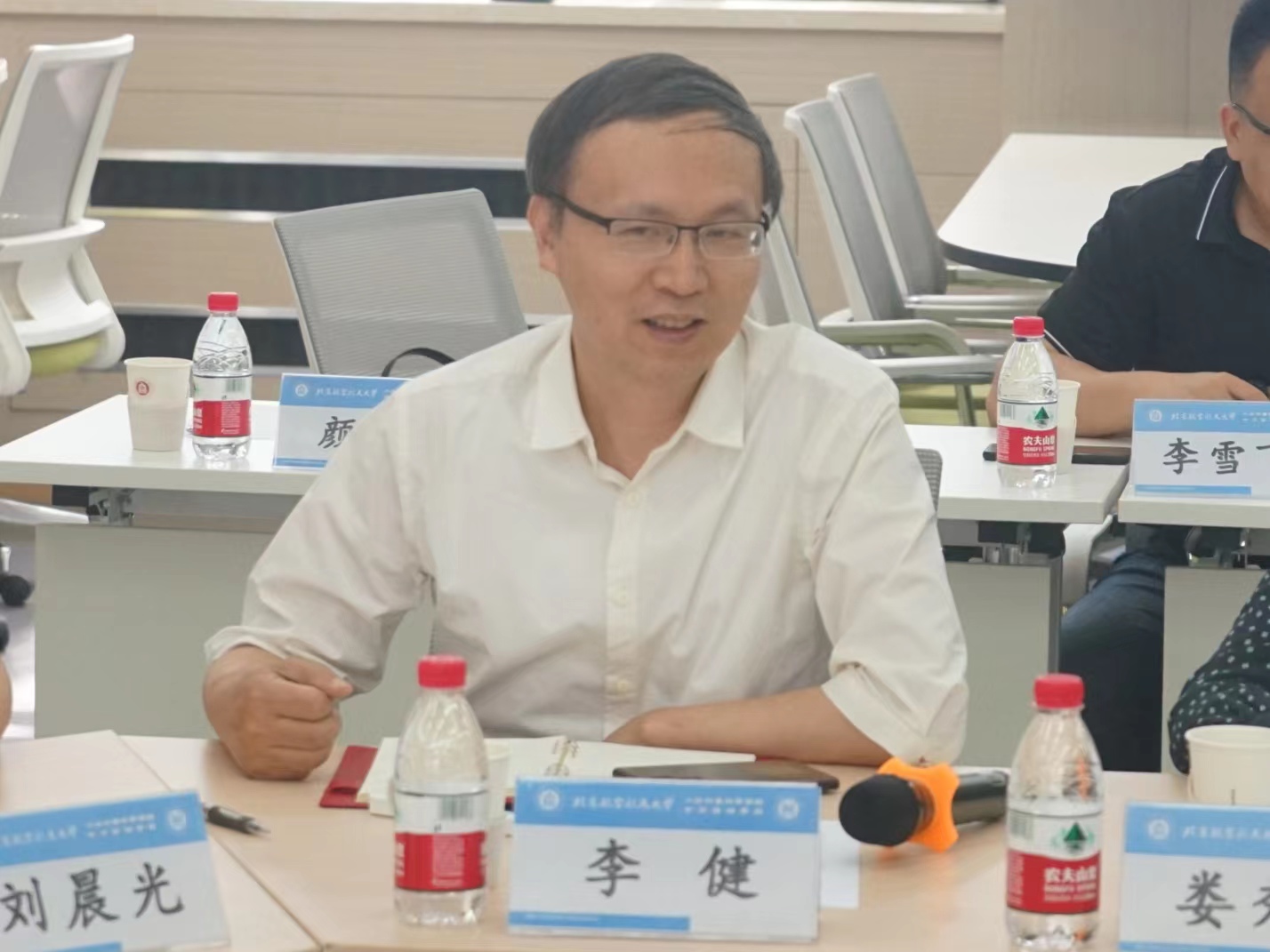 北京理工大学人文与社会科学学院院长李健、党委书记娄秀红、党委副书记孙硕、副院长张峰,西北工业大学公共政策与管理学院院长刘晨光、院长助理席建成,对外经济贸易大学政府管理学院院长李明、党委书记刘洁、副院长吕维霞、MPA中心副主任李雪飞、党政办主任金琳,北京航空航天大学人文社会科学学院(公共管理学院)院长蔡劲松、党委书记王琪全、副院长詹承豫、副院长陈文博、党委副书记方志、党政办主任张广文等参与会议。会议由蔡劲松主持。