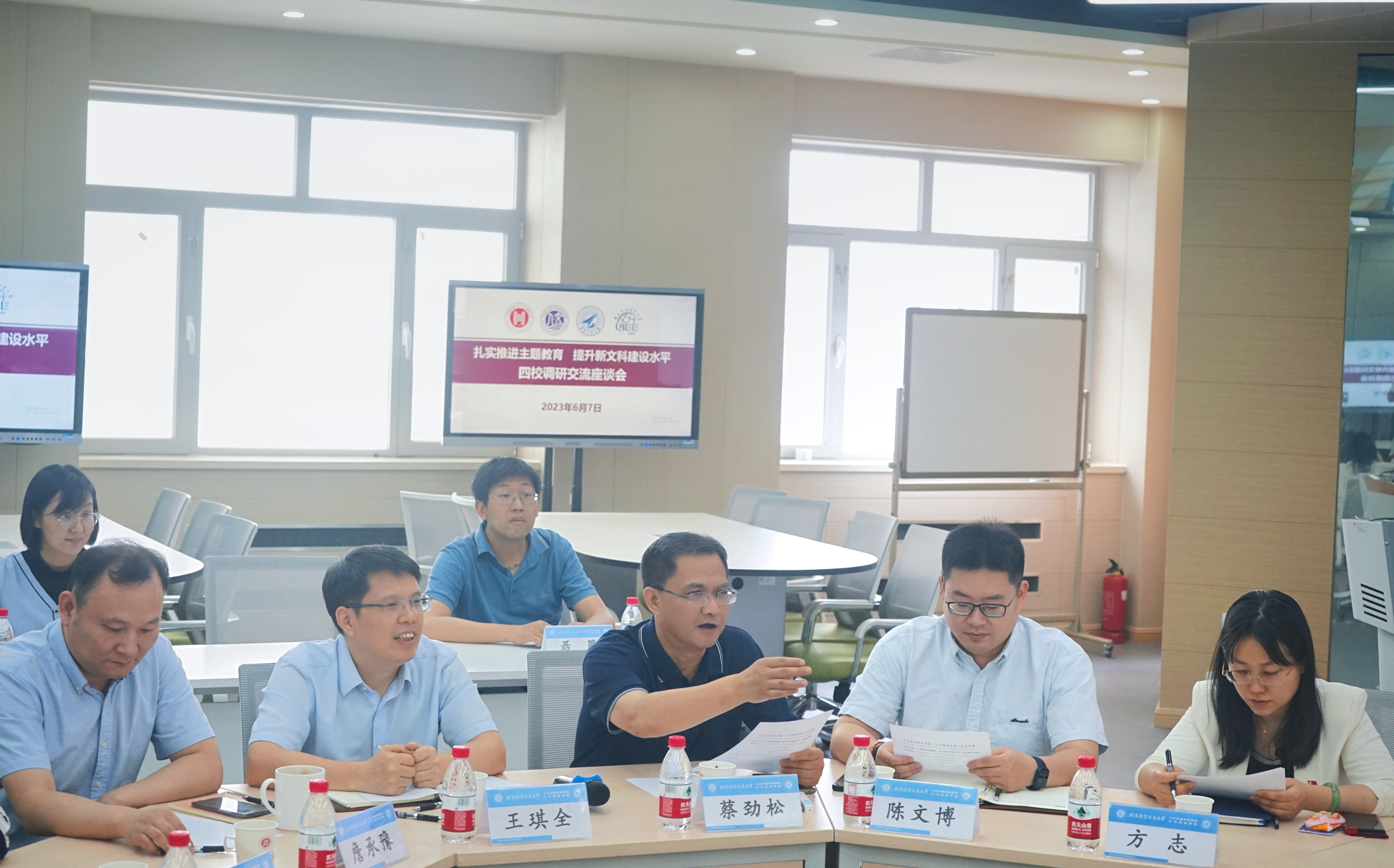 6月7日下午15时,北京航空航天大学、北京理工大学、西北工业大学、对外经济贸易大学部分文科学院负责人汇聚北航人文公管学院“公共管理系统工程实验室/智慧课堂”,开展主题为“扎实推进主题教育、提升新文科建设水平”的理论联学活动暨新文科建设调研交流座谈会。