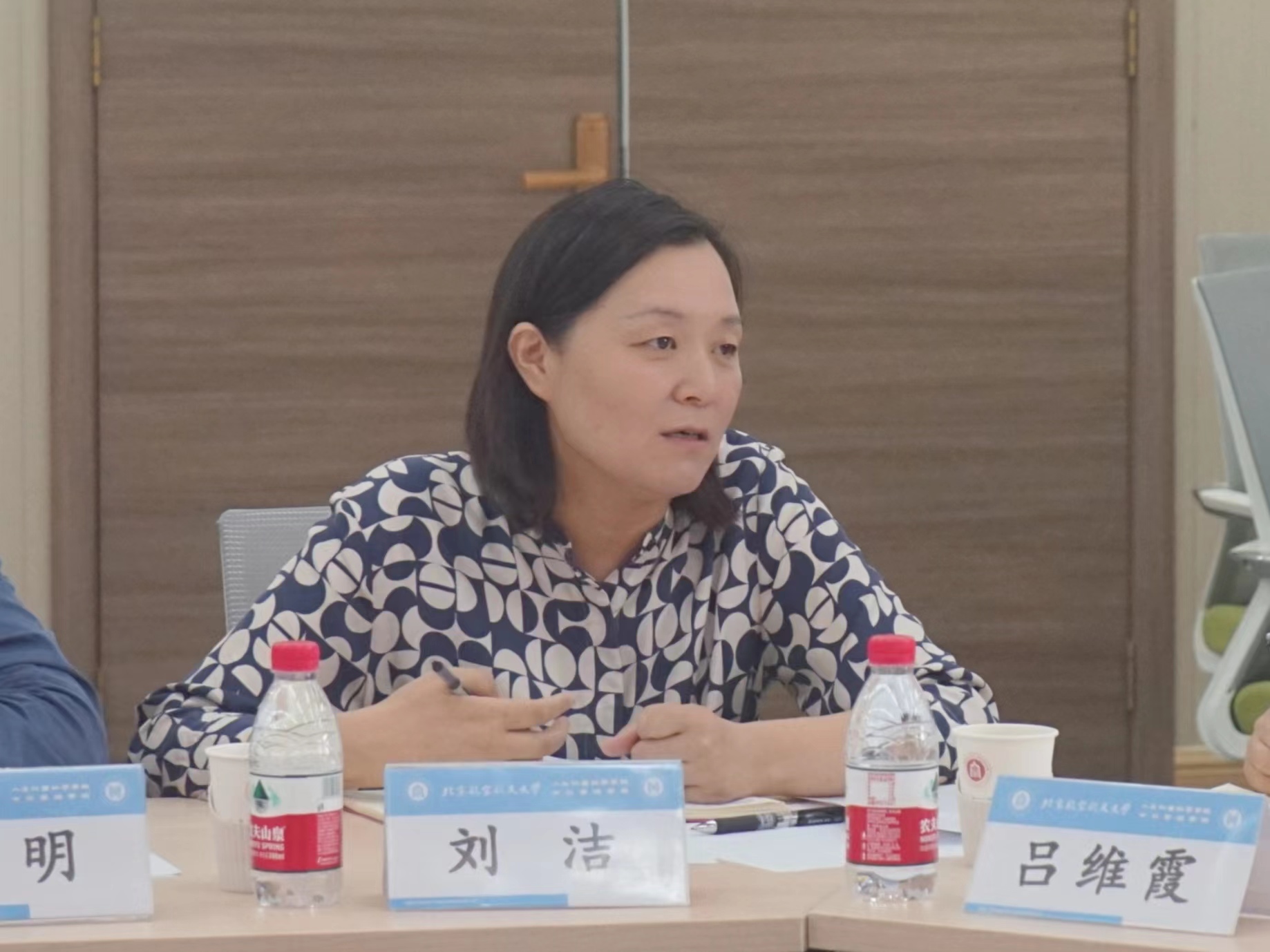 刘洁发言表示,非常高兴能与国防七子中的三所高校一起交流,在座高校在新文科建设中各具特色,却也同时面临着共同的难题。希望能够通过此次交流学习各校经验,探索问题的答案,推进学院高质量发展,培养拔尖创新人才,彰显学科特色。希望能够继续延续调研交流会,形成交流机制。