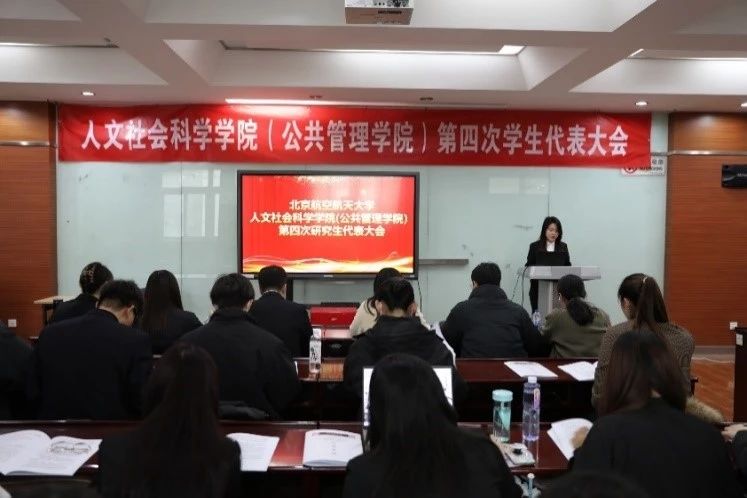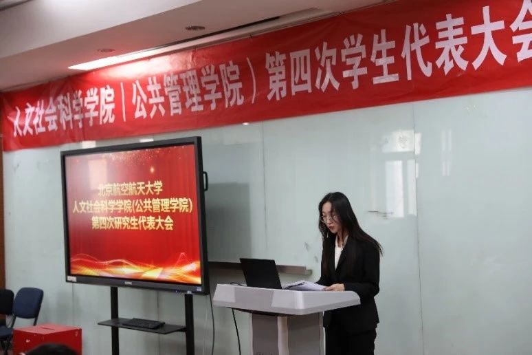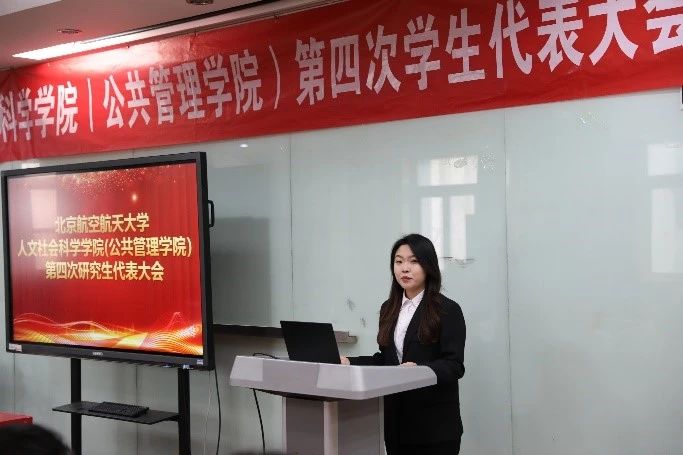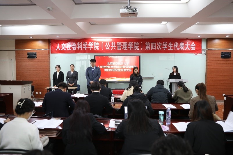 大会在庄严的国歌声中拉开帷幕。主持人潘喆介绍出席本次大会的领导与嘉宾,并宣读《北京航空航天大学人文社会科学学院(公共管理学院)第四次研究生代表大会代表资格审查报告》,经代表资格审查委员会的认真审查,经全院公示后无异议,代表资格全部有效。