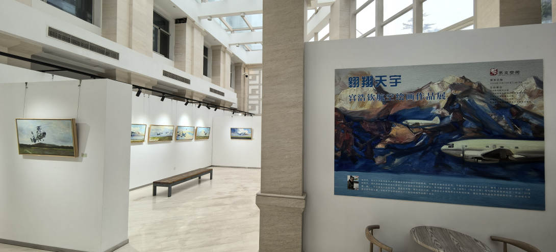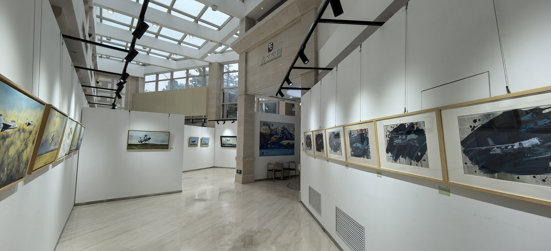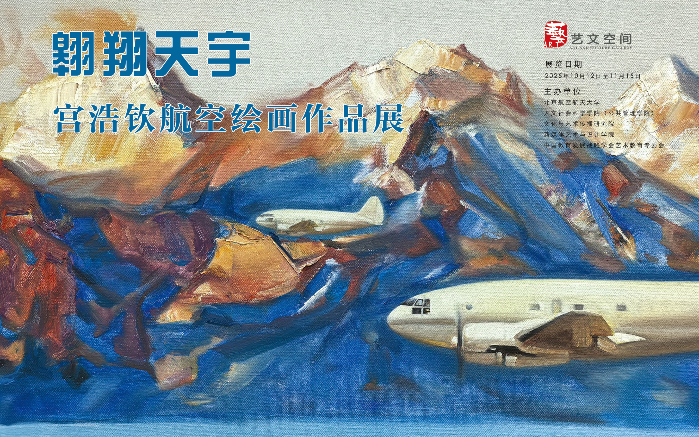 2025年10月12日,“翱翔天宇——宫浩钦航空绘画作品展”在北航人文公管学院艺文空间正式开展。展览由北京航空航天大学人文社会科学学院(公共管理学院)、文化与艺术传播研究院、新媒体艺术与设计学院和中国教育发展战略学会艺术教育专业委员会共同主办,共展出宫浩钦教授创作的航空题材布面油画和纸本绘画作品30余幅。开展当天,“构建高质量中国政治学自主知识体系暨《北京政治学界论丛》发布学术座谈会”在北航人文公管学院举办,出席会议的30余名专家学者饶有兴致地参观了展览,并对展览给予高度评价。