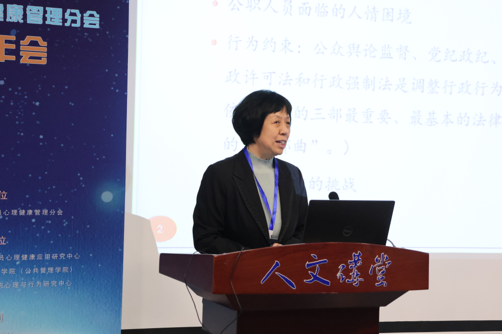 10月25日,由中国健康管理协会公职人员心理健康管理分会主办,中国科学院心理研究所国家公务员心理健康应用研究中心、北京航空航天大学人文社会科学学院(公共管理学院)、北京航空航天大学人文公管学院心理与行为研究中心共同承办的全国公职人员心理服务模式探索论坛暨公职人员心理健康管理分会学术年会在北京航空航天大学人文讲堂召开。论坛由中国科学院心理研究所教授祝卓宏主持,由中国健康管理协会监事会监事长郭齐祥、中国健康管理协会公职人员心理健康管理分会会长张建新、北京航空航天大学人文公管学院院长蔡劲松教授致辞。