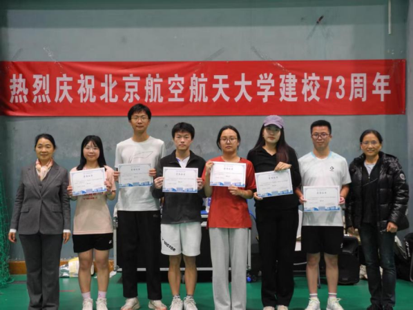 10月25日下午,北航人文社会科学学院(公共管理学院)在学院路校区体育馆副馆举办了“献礼校庆,以球会友”师生羽毛球单项赛。人文公管学院副院长陈文博、副院长涂晓芳、教师辅导员涂燕出席活动并为获奖队伍颁奖。