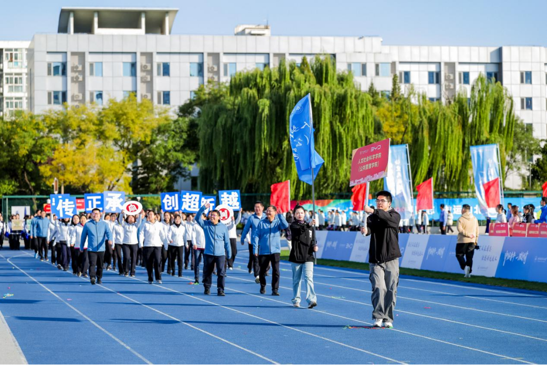 开幕式上,3000余名师生组成的44支方阵踏着铿锵的乐声走上跑道,展现了不同学院的风采!其中,人文公管学院方阵手持“传承超越,守正创新”字牌,步伐整齐,口号响亮,脸上洋溢着热情的笑容,尽情彰显了人文公管学院的团结与活力。