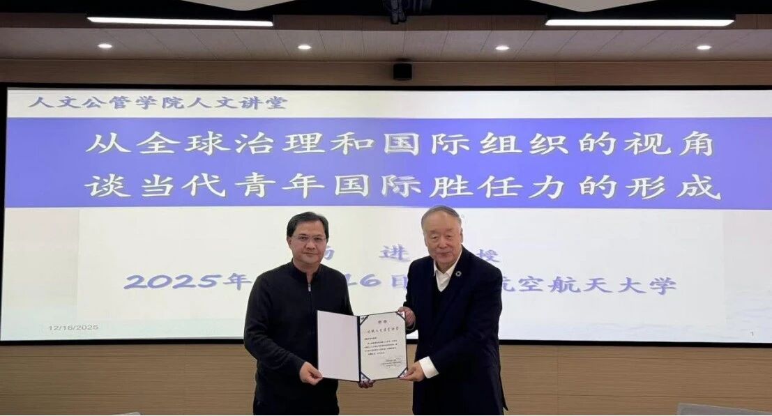 12月16日下午,中国常驻联合国教科文组织原大使衔代表杨进教授访问北京航空航天大学人文社会科学学院(公共管理学院),并为师生带来题为《从全球治理和国际组织的视角,谈当代青年国际胜任力的形成》的学术讲座。