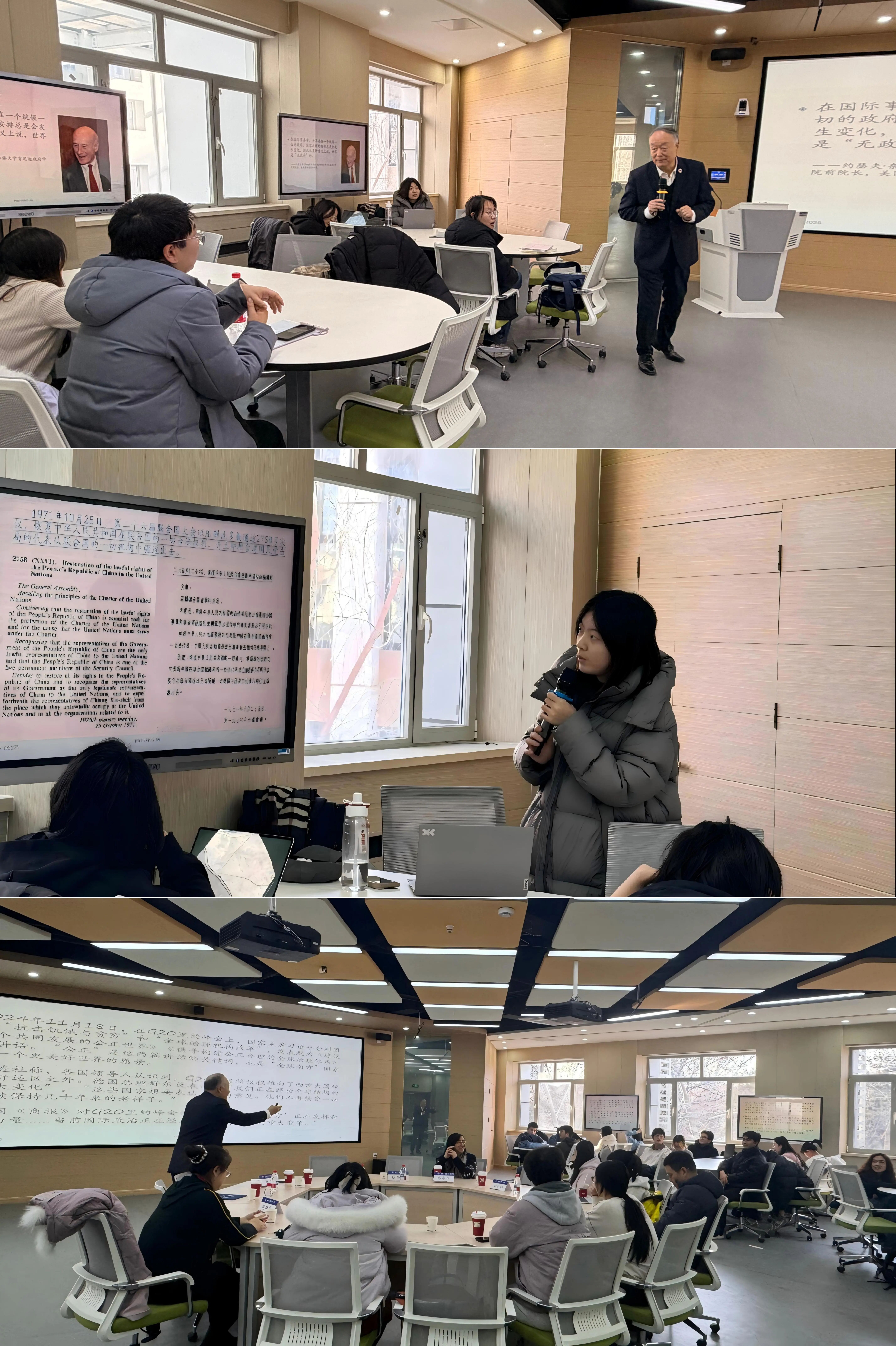 杨进教授围绕国际治理相关主题开展专题讲座,系统梳理了国际治理的现状与挑战,深入解析了中国参与国际治理的历程及国际组织的核心知识,并为青年提升国际胜任力做出指引。讲座中,杨进教授指出,当前全球治理在单边主义、保护主义及区域冲突等影响下合作难度加大,同时以中国为代表的“全球南方”国家治理能力正不断提升,国际治理力量对比发生深刻变化。中国作为联合国创始国之一,自1971年恢复中华人民共和国在联合国合法席位后积极参与国际治理,但仍面临话语体系差异、相关人才能力匹配不足及在国际组织人员占比偏低等挑战。他还介绍了政府间国际组织与非政府间国际组织的性质特点、联合国大会2758号决议的重要意义、联合国庞大的机构体系及2030年可持续发展目标的进展情况,强调联合国等国际组织对包容、正直等核心价值观及多元能力的要求。针对青年群体,杨进教授建议树立人类命运共同体情怀,尊重文化多样性,从积累项目实践经验、深耕专业领域及掌握国际机构工作语言入手提升国际胜任力。