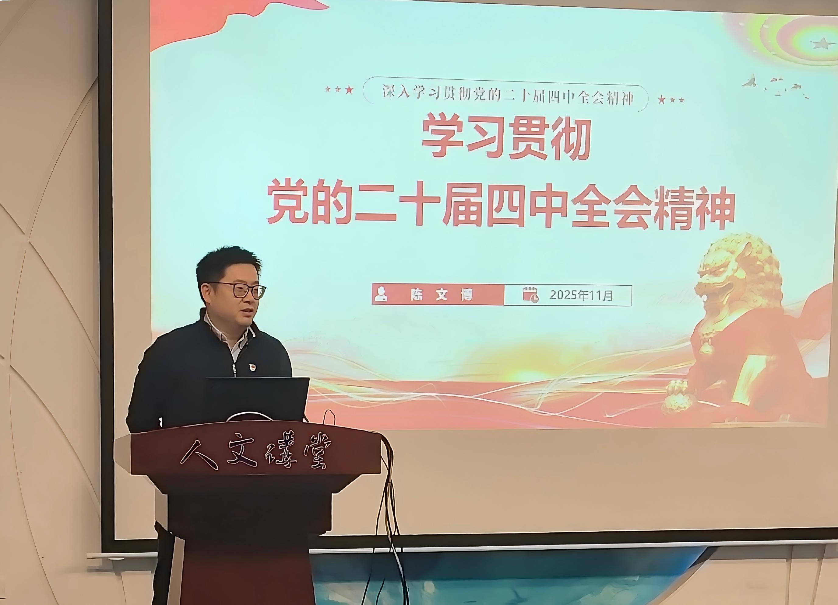 成立大会后,党委书记陈文博教授为全体党员同志讲授《深入学习贯彻党的二十届四中全会精神》首场党课。陈文博教授系统领学了党的二十届四中全会精神,并指出要结合非全日制研究生“学用结合”的特点,将全会精神转化为学习研究的动力、岗位履职的实效,鼓励党员同志们在公共管理实践中坚守初心、勇担使命,为人文公管学院高质量发展贡献更多力量。
