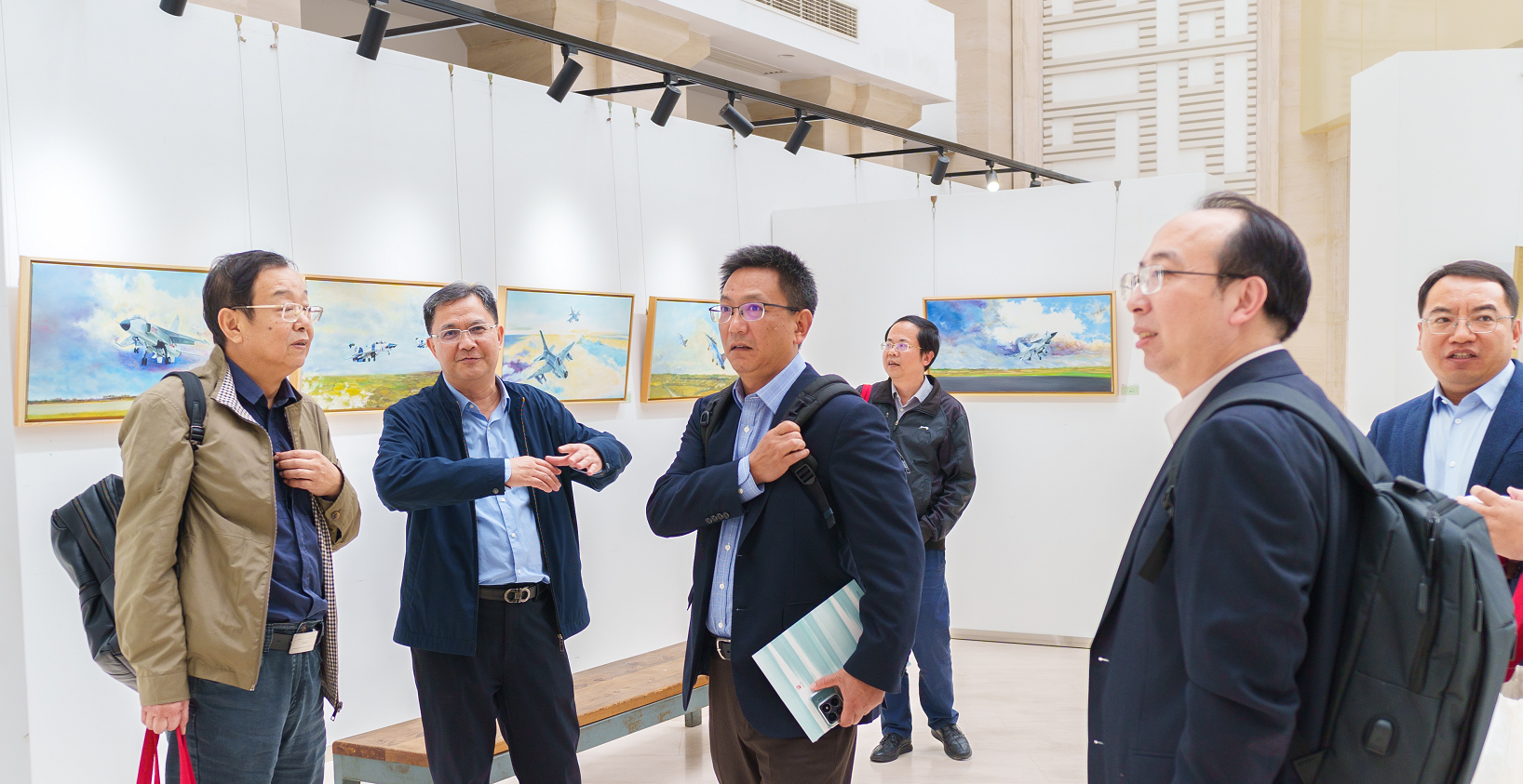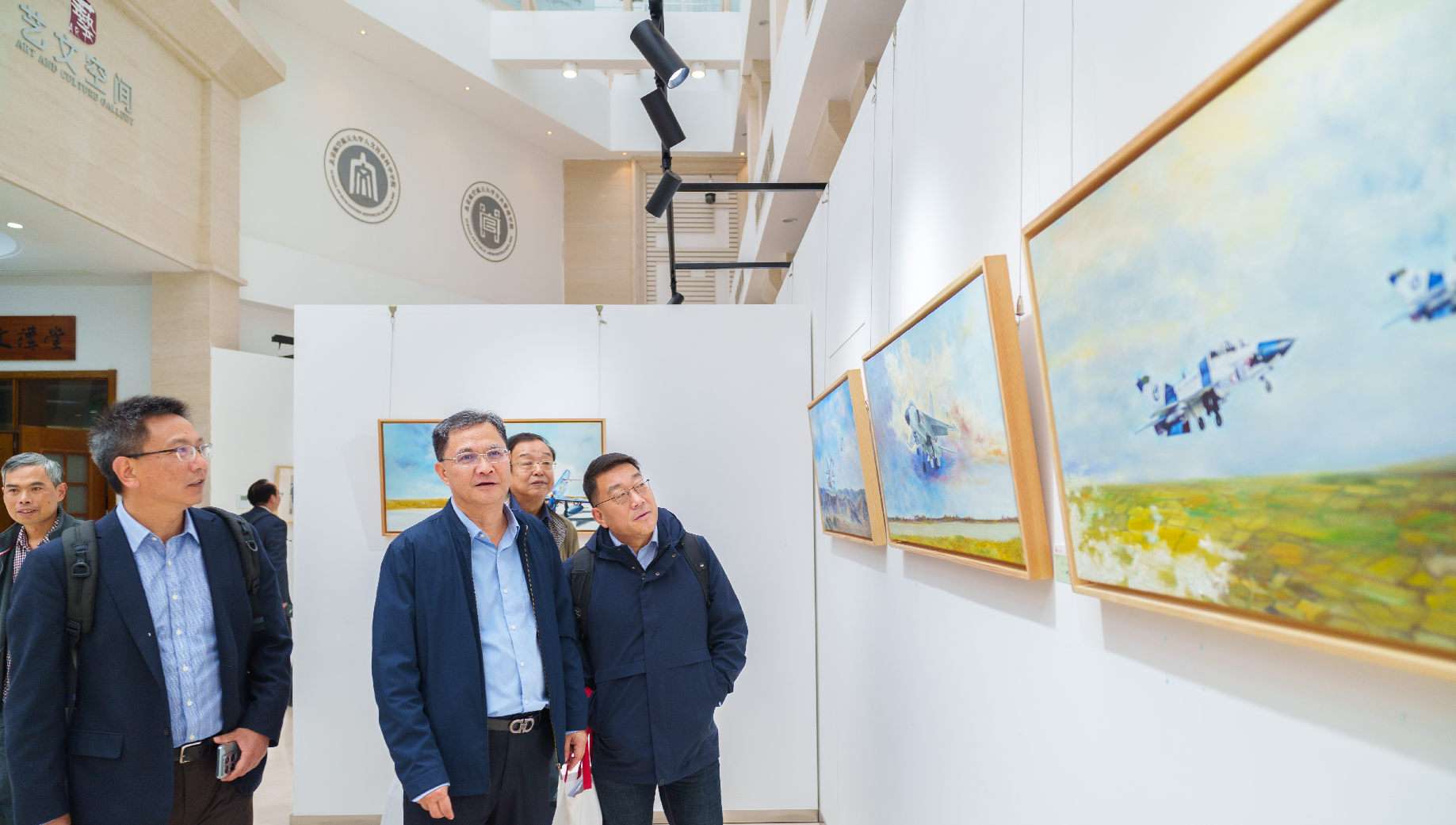 2025年10月12日,“翱翔天宇——宫浩钦航空绘画作品展”在北航人文公管学院艺文空间正式开展。展览由北京航空航天大学人文社会科学学院(公共管理学院)、文化与艺术传播研究院、新媒体艺术与设计学院和中国教育发展战略学会艺术教育专业委员会共同主办,共展出宫浩钦教授创作的航空题材布面油画和纸本绘画作品30余幅。开展当天,“构建高质量中国政治学自主知识体系暨《北京政治学界论丛》发布学术座谈会”在北航人文公管学院举办,出席会议的30余名专家学者饶有兴致地参观了展览,并对展览给予高度评价。