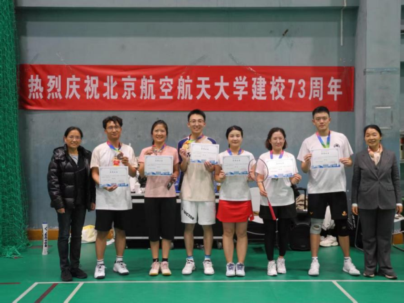 10月25日下午,北航人文社会科学学院(公共管理学院)在学院路校区体育馆副馆举办了“献礼校庆,以球会友”师生羽毛球单项赛。人文公管学院副院长陈文博、副院长涂晓芳、教师辅导员涂燕出席活动并为获奖队伍颁奖。