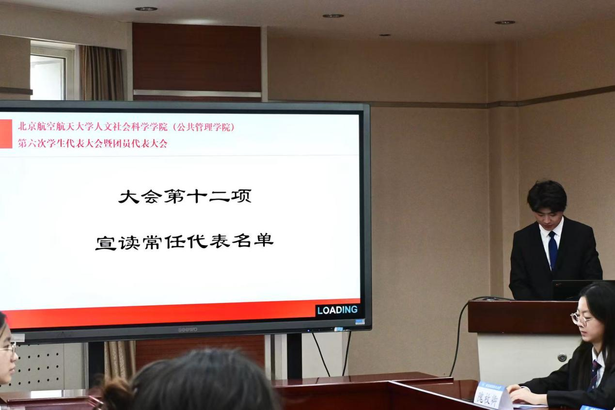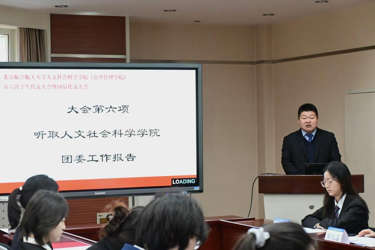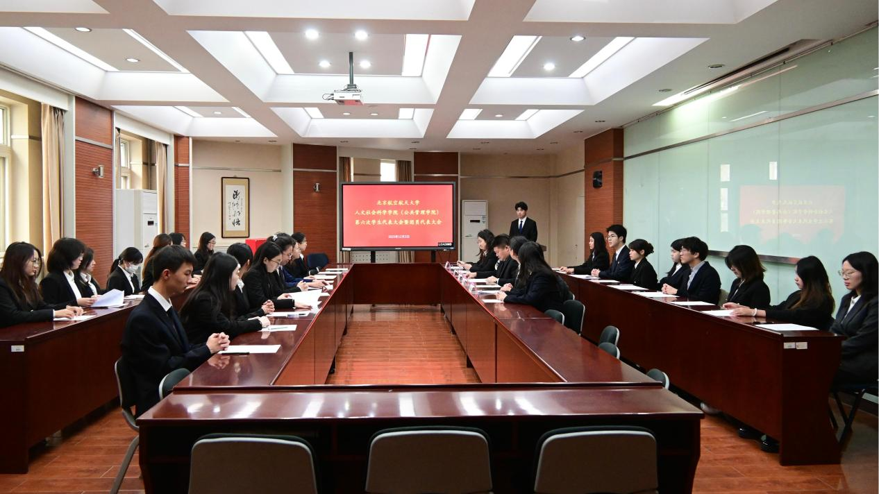 2025年12月3日13时,北京航空航天大学人文社会科学学院(公共管理学院)第六次学生代表大会暨团员代表大会于人文楼202会议室召开。大会由宋锴主持。