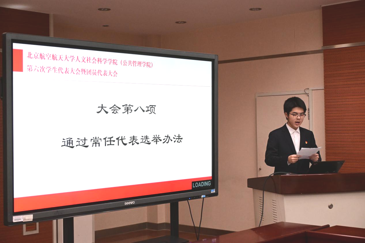 会议审议并表决通过了《北京航空航天大学人文社会科学学院(公共管理学院)学生代表大会常任代表选举办法》,同时审议通过了监票人、计票人名单,完成了对人文社会科学学院(公共管理学院)第六次学生代表大会常任代表的选举。