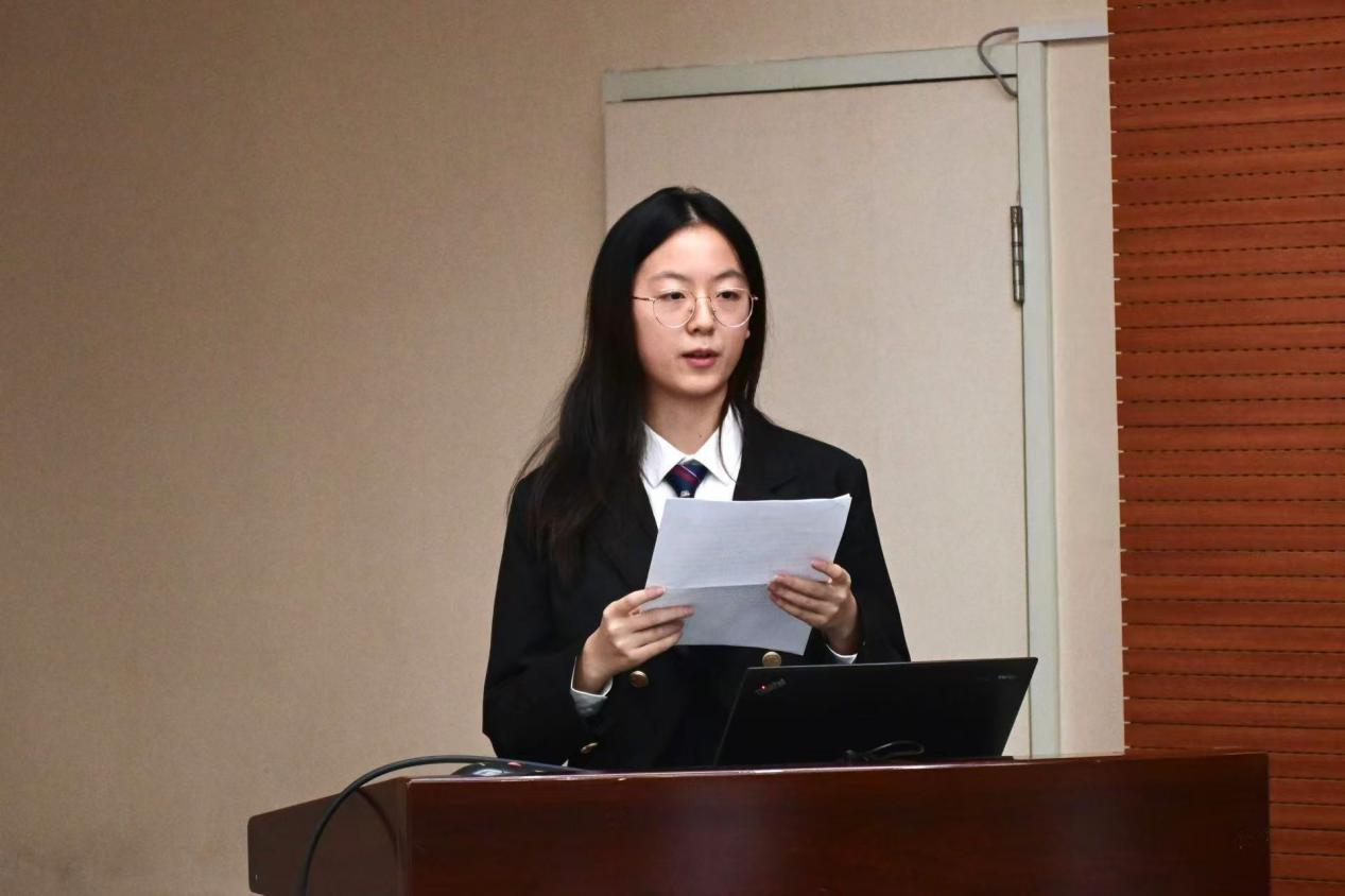 北京航空航天大学学生会代表隗枚卿同学致辞,她代表校学生会对人文社会科学学院的学生工作者们提出着力服务广大同学普遍性需求、提升服务大局水平、深化改革创新的期许,对人文社会科学学院在过去一年中的工作给予充分肯定。