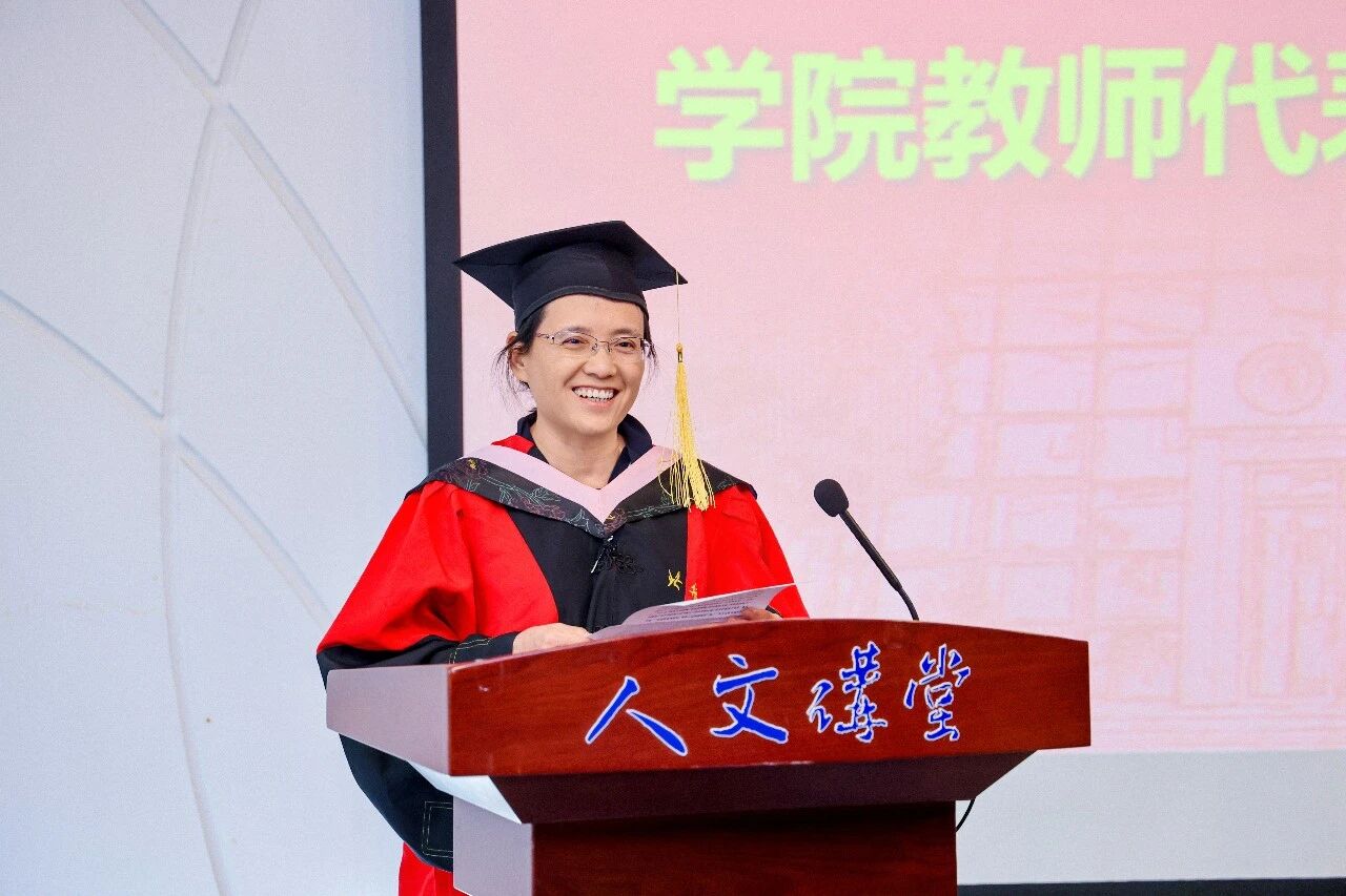 学院教师代表、副院长涂晓芳教授为毕业生们送上临别赠言。她温情回望了与同学们共度的美好时光,课堂上的思想碰撞、赛事中的并肩作战、论文打磨时的反复推敲,一幕幕珍贵画面历历在目。她叮嘱同学们,未来无论身处何种岗位,都要坚守北航精神,以坚韧的品格、足够的耐心和坚定的定力面对人生风雨;要牢记学术初心,将所学知识转化为实践动能,把论文写在祖国大地上,在服务社会中实现人生价值。祝愿同学们事业腾飞,生活幸福,为北航蓝增色,为中国红添彩。