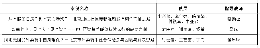 近日,全国公共管理专业学位研究生教育指导委员会正式公布2025年中国专业学位案例中心公共管理案例征集活动入选名单。我校选送的《智慧养老,见“人”见“智”——B社区智慧养联体持续运行的破局之道》《从“脆弱旧房”到“安心港湾”:北京H区T社区更新难题迎“韧”而解之路》《风雨无阻的外卖骑手自身难保?——北京市外卖骑手社会保险参与困境与解决思路》共3篇案例从全国众多申报案例中脱颖而出,成功入选国家级案例库。